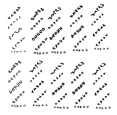 El primer paso para tal construcción estuvo dado por la creación de conjuntos repetitivos de aquellas letras del alfabeto que forman la palabra Paralengua. Cada una de ellas se generó en diferentes perspectivas, cual una mota de polvo estelar a la deriva, o una estrella en rotación.